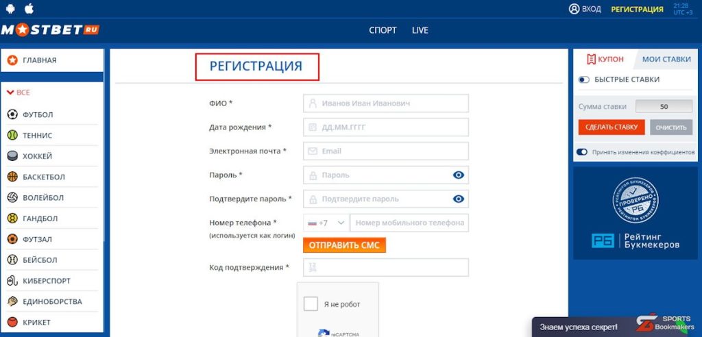 - Подтвердить совершеннолетие и согласие с правилами букмекера.